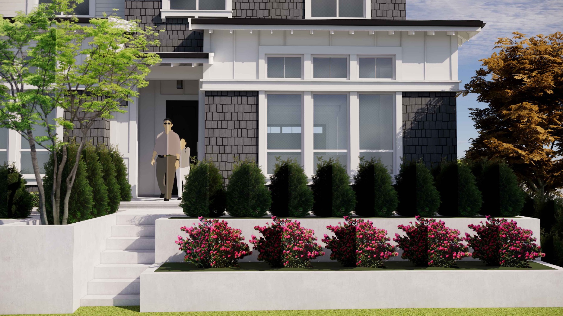 Situated adjacent to Crescent Park and Crescent Park Elementary School, the site is well located for young families. Furthermore, with new provincial regulations requiring municipalities to add more small-scale multi-unit housing, our proposal aligns with both provincial and municipal goals, ensuring the fulfillment of the communities long-term housing need. In addition to addressing housing needs, our proposal prioritizes environmental sustainability and community well-being. The project would create a green buffer connection along the south property line, extending from the existing neighbourhood park to the east and ultimately connecting to 128th Street. Furthermore, tree preservation has been prioritized surrounding the internal amenity space, to enhance livability.