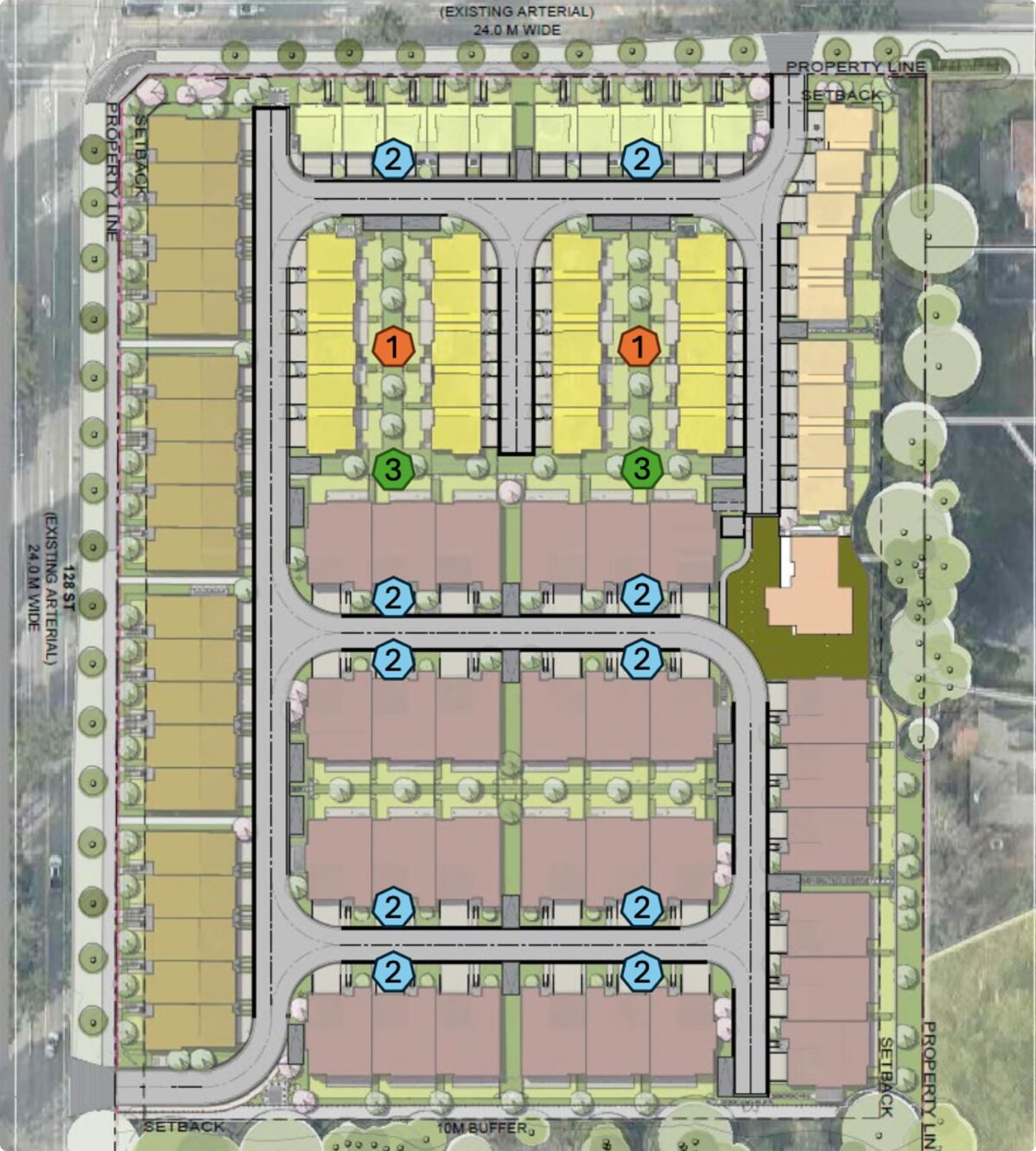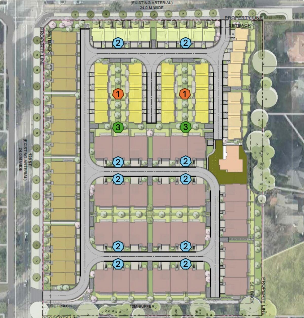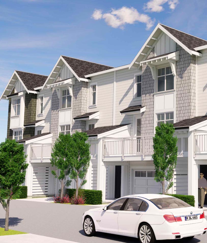 The amended proposal reduces the proposed density from 93 to 89 units. We removed two blocks of homes to create more space for parking, landscaping and enhanced liveability.